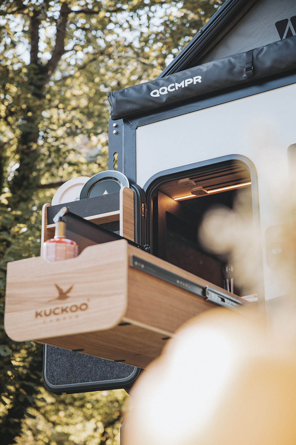Von außen sehe ich kompakt aus, aber innen überrasche ich mit Raumgefühl. Durch meine Squaredrop-Form gibt’s Kopffreiheit und mein Innenausbau bietet dir genügend Platz für dein Reisezubehör. Ich habe kein fest verbautes Gas, kein Wasser, keine komplizierte Elektrik. Klingt nach Verzicht? Für mich heißt das Freiheit. Weniger Ballast, weniger, was kaputtgehen kann – und mehr Fokus auf das Wesentliche: unterwegs sein, draußen sein, Zeit teilen.